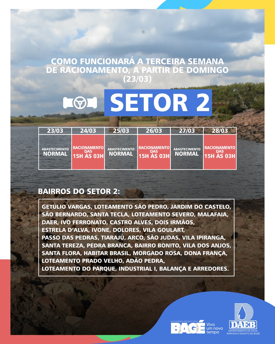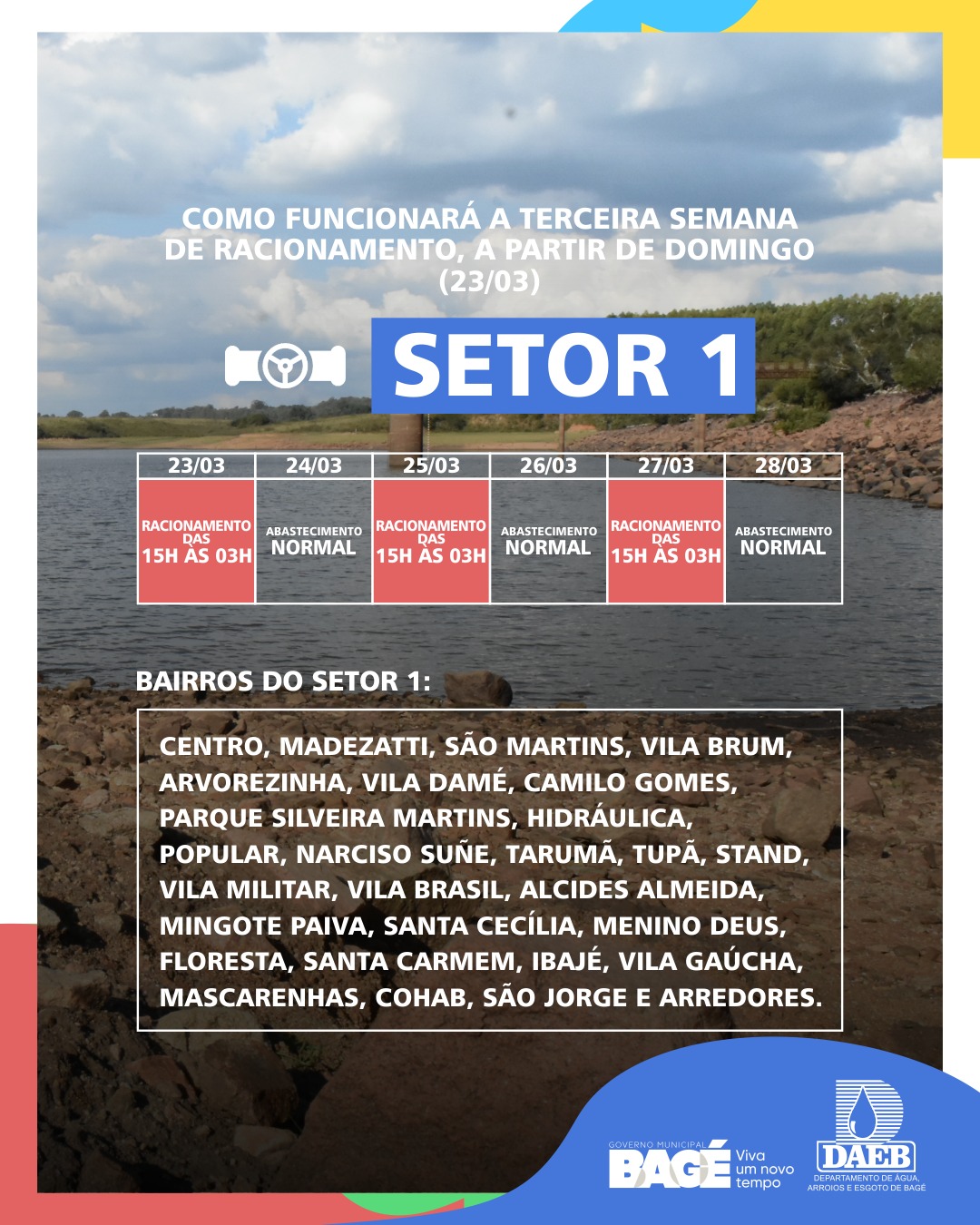 Acompanhe a tabela de racionamento de 23 a 28/03
