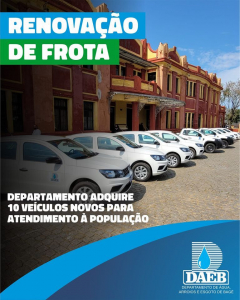 “Esta é uma importante ação da atual gestão. São recursos oriundos da cobrança das tarifas de água e esgoto que estão retornando à comunidade, pois estes veículos serão utilizados nos diversos serviços prestados pela autarquia. Era extremamente necessária esta renovação de frota para mantermos a agilidade e qualidade dos nossos serviços”, destaca Franco Alves, diretor do Daeb.