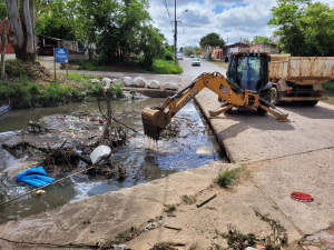 Na manhã desta terça-feira (01/11), o Departamento de Água, Arroios e Esgoto de Bagé (Daeb) realizou a limpeza na ecobarreira localizada no Arroio da Tábua, na ponte da Ernesto Médici. A ação foi realizada para retirar o elevado depósito de lixo, que acaba causando alagamentos e enchentes. Foram removidos cerca de 12 m³ de resíduos, uma caçamba inteira de entulho.